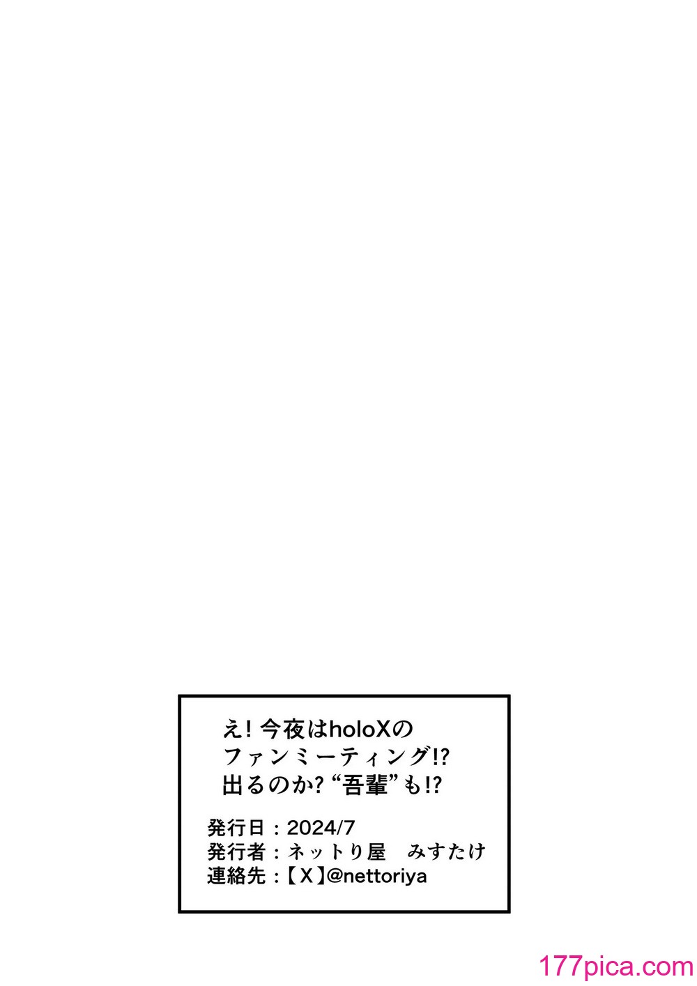 • 在〈[ネットり屋 (みすたけ)] え! 今夜はholoXのファンミーティング!_ 出るのか_ “吾輩”も!_ (ホロライブ)[54P]〉中留言功能已關閉